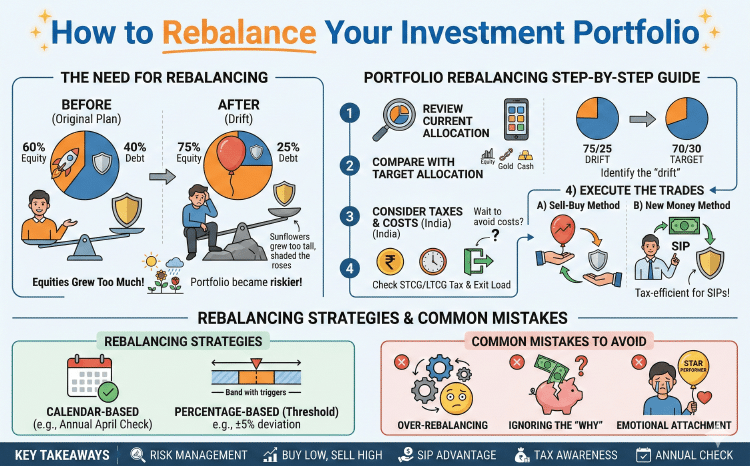 Learn the essential steps to rebalance your investment portfolio effectively to manage risk and maintain your long-term financial goals in the Indian market.